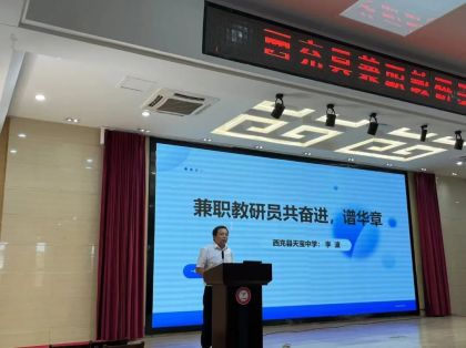 天宝初中李波代表初中兼职教研员以“共同成长”为主题作经验交流,从情怀、服从、执行、桥梁、示范等方面解读了如何用实际行动表现教研员的担当与作为。