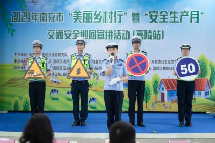 6月20日,由南充市公安局交通警察支队主办,嘉陵区公安分局、嘉陵区道路交通安全综合治理委员会办公室、嘉陵区大通镇人民政府、南充市公安局交通警察支队直属三大队承办的2024年南充市“美丽乡村行"暨"安全生产月"交通安全巡回宣讲活动第四站一嘉陵站,在南充市嘉陵区大通镇正式拉开帷幕。