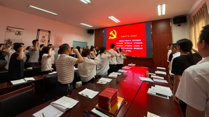 “我志愿加入中国共产党,拥护党的纲领,遵守党的章程,履行党员义务,执行党的决定,严守党的纪律……”全体党员在党办主任李志刚的引领下,面对党旗,高举右手,重温入党誓词,铮铮誓言传达的是身为共产党员的自豪感和使命感,是对党的庄严承诺。