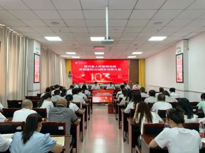 6月28日下午,医院党委在第一学术厅召开庆祝建党103周年党员大会,会议由党委书记杨飞同志主持,医院全体党政领导班子成员、全院党员、2024年新发展党员参会。