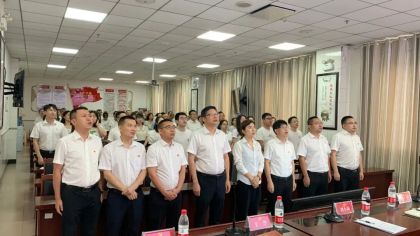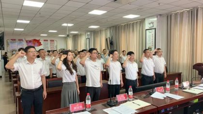 面向鲜艳的党旗,党委书记杨飞同志领誓,新发展党员入党宣誓,其余党员重温入党誓词。大家面向党旗、高举右拳,以铮铮誓言表达了对党忠诚、为党奉献终身的信心与决心。一句句誓言,铿锵有力,如号角一般,激励党员干部职工不忘初心、砥砺前行。