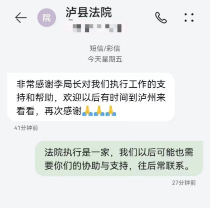“你好,我们是泸州市泸县法院执行局的执行法官。现在有个案件请求贵院协助执行。”
