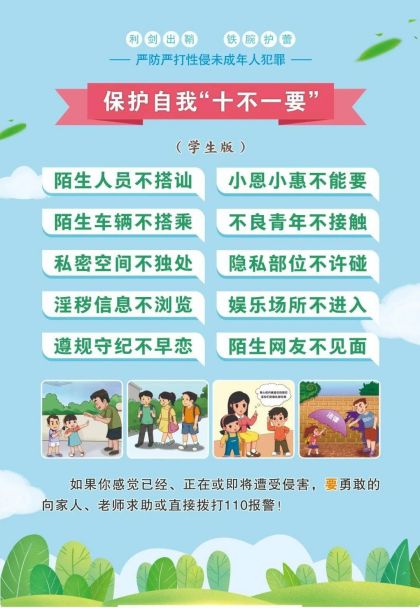 平时外出郊游或参加班集体活动,要结伴而行,不要单独与男生到公园、森林或人少的地方去;外出时,随时与家长联系。外出不要和陌生人搭腔,如有人叮梢或纠缠,尽快向大庭广众之处靠近,必要时可呼叫。