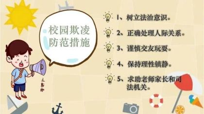 孩子遭遇欺凌时,往往不敢说。对此,孩子们要认识到,首先要心理强大,不害怕欺凌,哀求欺凌者会导致继续被欺凌,勇于报警,报告成人才能中断欺凌。