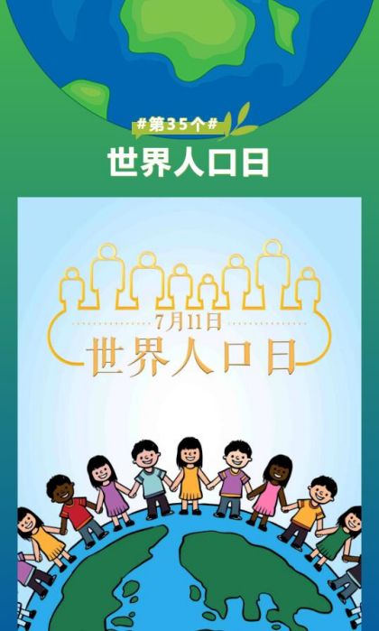 世界人口日(World Population Day)是每年的7月11日。1987年7月11日,地球人口达到50亿。为纪念这个特殊的日子,1990年联合国根据其开发计划署理事会第36届会议的建议,决定将每年7月11日定为“世界人口日”,以唤起人们对人口问题的关注。