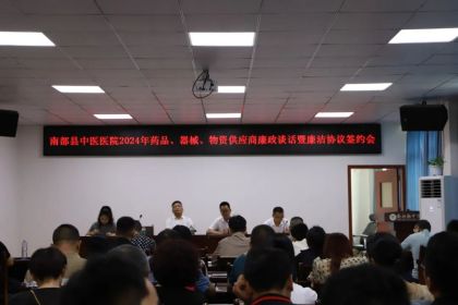 为进一步推进清廉医院建设,从源头上预防和遏制违法违纪问题的发生,切实抓好医院在药品、医疗器械、耗材物资采购等方面的廉洁风险防控工作。近日,我院在行政楼四楼会议室组织召开了药品、器械、物资供应商廉政谈话暨廉洁协议签约会。院党委副书记、院长蒲万刚,院党委委员、副院长杨应雄、王勇、李娟,相关职能部门负责人及供应配送单位代表共50余人参加了此次会议。会议由院党委委员、副院长王勇主持。