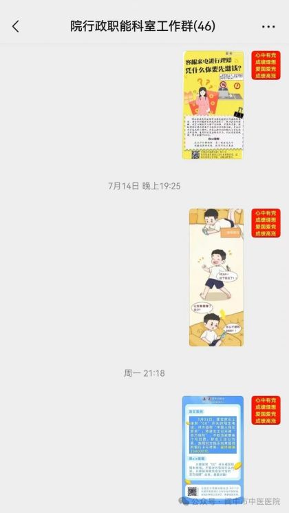 为确保反诈工作深入人心,医院采取了线上线下宣传相结合的方式,构建了全方位、多层次的宣传体系。线上,在院内微信工作群每日转发反诈小贴士和预警信息,利用微信公众号转发反诈科普案例等;线下,通过医院LED显示屏滚动播放反诈标语及常识、制作并发放反诈宣传资料,定时到各科室开展现场督导检查,指导每位职工下载国家反诈中心APP、“熊猫反诈”等政务抖音号,确保每位职工都能掌握防骗知识。