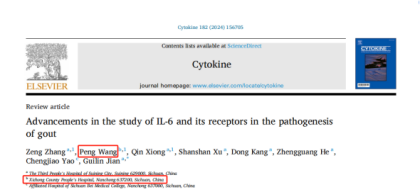 近日,西充县人民医院主治医师王鹏在《Cytokine》杂志上发表“Advancements in the study of IL-6 and its receptors in the pathogenesis of gout”的学术论文,主治医师王鹏为文章共同第一作者。《细胞因子》(Cytokine)是以医学-免疫学综合研究为特色的国际期刊,已被国际重要权威数据库SCI、SCIE收录,期刊聚焦医学-免疫学领域的重点研究和前沿进展。该刊2023年影响因子为3.7。