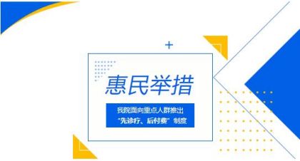 “先诊疗 后付费”即县域内重点人群入院时不需要缴纳住院押金,出院时一次性结清自付费用后即可办理出院,确保患者在第一时间内得到安全有效的治疗,切实减轻患者垫资压力和经济负担。