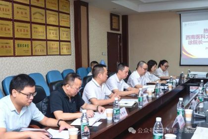 程箫寒院长对徐厚平副院长一行的到来表示热烈的欢迎,他介绍了医院的基本情况,并对两院历年来友好的交流合作情况进行了回顾。他表示,西南医科大学附属中医医院与阆中市中医医院建立了对口帮扶协作,7年来共下派了放射诊断、中西医结合内科、药学、麻醉、泌尿外科、护理等专业专家对我院进行帮扶与指导,他们参与科室管理,指导临床诊疗工作,积极发挥中医药特色优势开展新项目新技术,辅助科室人员申报科研课题,显著帮助提高了医院医务人员技术水平,提升了医疗服务质量。在下一步工作中,希望两家医院能全面深化合作,在人才培养、学科建设、科研创新、院内制剂研发等各方面进一步加强交流,为祖国中医药事业发展作出贡献。