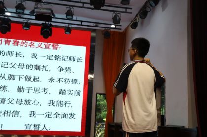 程俊豪同学带领全体同学宣誓,同学们高举的拳头,不仅是青春的誓言,更是将这份誓言化为行动的坚定力量。同学们共同承诺,将不负韶华,不负自己,以实际行动让青春熠熠生辉!