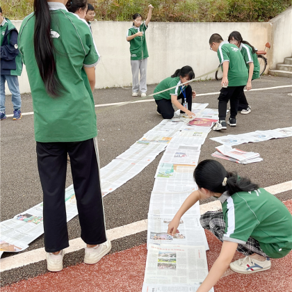 风雨同舟:想象一张报纸是一艘在狂风暴雨中飘摇的小船,每个组的成员则是船上的同伴。怎么样让每个同伴都不掉下船呢?