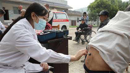 由老年病科、外科、康复科、针灸科、呼吸内科骨干、专家组成的医护团队免费为老年人测量血压、血糖,询问病史、用药史,经过中医诊脉、中医辨识体质后,给出具体的治疗方案和用药建议,针对颈部不适的老年人,中医专家现场予以针灸治疗。