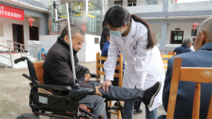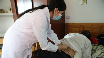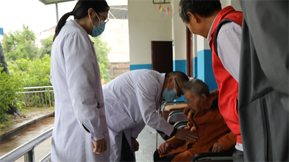 对长期卧床、生活无法自理的老年人,医护团队走进住宿区,详细询问老人们的病史及用药情况,并对饮食、药物及护理等方面进行指导。
