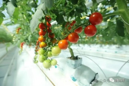 大棚里检查小番茄长势。
