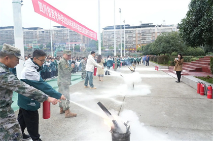 随即,刘兵教官向师生展示了灭火器的正确使用方法,并采取随机抽取学生、公寓管理员提问和实操演练的方式,不仅让同学们在活跃的氛围中增长了消防安全知识,更加深了对防范自救技能的掌握。