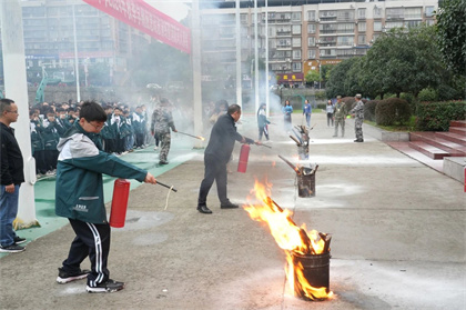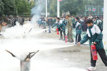 为响应“全民消防、安全至上”的消防宣传主题,增强师生应急避险意识,提高自救防范能力。11月11日上午,我校组织初2024级全体师生和学生公寓管理员开展了“应急疏散暨消防灭火演练”活动。