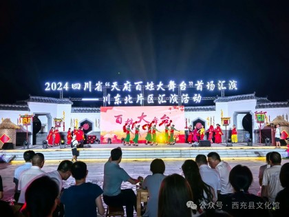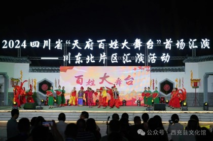 8月26日19:30,2024四川省“天府百姓大舞台” 首场汇演——川东北片区汇演活动在仪陇县马鞍镇客家民宿博览园举行,国家公共文化云全程直播。