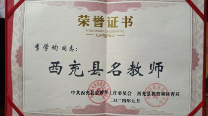 2024年中共西充县委教育工作委员会、西充县教育和体育局表彰的西充县第六届“名校长”“名教师”活动中,我校教师李学均荣获西充县“名教师”称号。