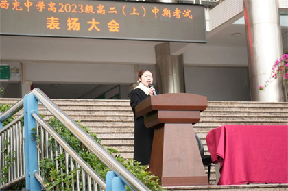 家校携手,共创未来。优秀学生代表蒲文林家长蒲海清发言,她表示家长永远是孩子努力的后盾,在高二这重要的时刻,作为家长要关注孩子的学习,更应该关注孩子全面的成长。同时要以身作则,创建良好的家庭氛围,积极做好家校沟通,携手为孩子们的成长提供帮助和鼓励。