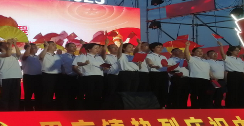 (五)以党带团的形式,组织20名团员和学校全体党员、入党积极分子,代表学校党支部以《唱支赞歌给党听》节目参加界市镇政府组织的热烈庆祝中国共产党102周年活动。充分发挥我校党支部的战斗堡垒作用,以此为契机大力宣扬我校师生积极向上的面貌。