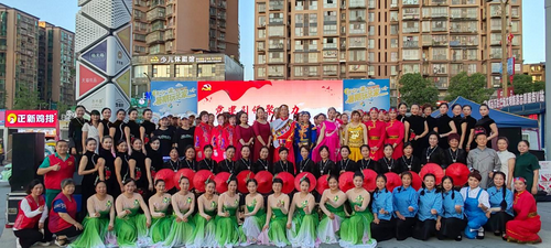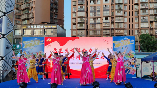 文艺表演在歌伴舞《母亲是中华》中拉开帷幕,表演队伍载歌载舞,马面裙斗笠秀《采薇》,太极拳《男儿当自强》,舞蹈表演《威远不远》等12个精心编排的节目轮番上演,演员们精神饱满,意气风发,用嘹亮歌声、欢快舞蹈赢得了现场观众的阵阵掌声。最后,全体演员合唱《没有共产党就没有新中国》,熟悉旋律热血沸腾的歌声在万达广场阵阵回响,用新时代最美声音庆贺党的生日。通过歌曲、舞蹈等方式,淋漓尽致地传达了威远群众永远跟党走的理想和信念,展现基层党员干部牢记初心、奋力向前的美好姿态。