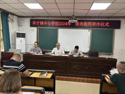 岁月留痕,芳华染墨。为祝贺东兴区双才中心校2024年度教职工(黄娟、刘兆荣、王炼兵)光荣退休,7月2日上午,以“扎根双才育桃李 初心如磐映芳华”为主题的教职工退休仪式在学校第二会议室举行,仪式由学校工会主席汪利平同志主持,全体教职工参加了本次仪式。
