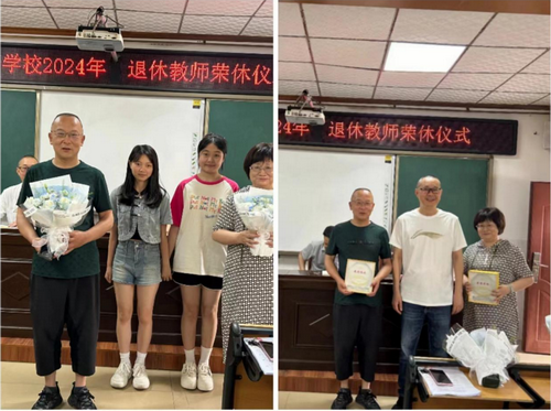 仪式伊始,学生代表为退休老师们献上鲜花,学校党支部书记、校长陈勇同志为退休老师们分发了退休奖牌及慰问金并致辞,陈勇同志充分肯定了退休教师们为学校发展作出的积极贡献,对他们几十年的辛苦耕耘和无私奉献表示衷心的感谢和崇高的敬意!祝福他们退休生活多姿多彩,幸福美满。陈勇同志表示,希望退休教师们一如既往地关心支持学校发展,积极建言献策,发挥余热,贡献智慧。学校永远是荣退教师的家,欢迎他们常回家看看。