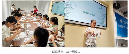 社工和志愿者们通过贴画、联想的方式,引导儿童们利用树叶自由创意、创作,促进儿童对生活的观察和联想,培养儿童热爱生活和大自然的情感,激发他们对于未知世界的探索。贴画中,孩子们保持耐心、细心和专注力。每画完一幅画,孩子们就轮流上台向大家展示自己的作品,并向大家描述画的内容。