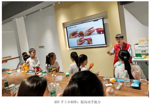 为锻炼孩子们的动手能力、注意力和创造性思维,志愿者们组织孩子们开展DIY手工小制作,活动现场小朋友们跟着教学视频“有模有样”的制作起来,老师在一旁协助。一个个模样可爱的小玩具在小朋友的巧手中被制作出来,不拘一格、创意满满。