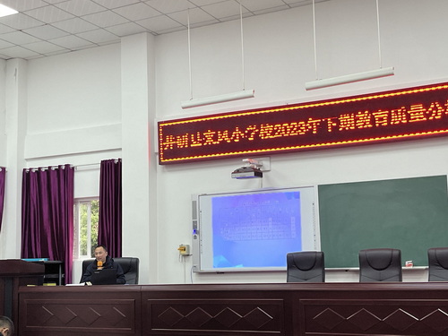 分析会上,教导主任胡朝洲通过上学期期末教学质量监测情况进行了深度分析。他结合监测情况进行横向对比,用“数据”说话,理性寻优势,客观找问题,以“问题”为导向,研讨可操作性强的教学方法。
