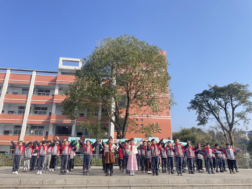 草木初萌,大地复苏,泥融沙暖,春山可望。三(1)中队全体同学表演了手势舞《上春山》。激励全校少先队员自觉主动地在生活中保护生态环境,将“爱绿护绿”的种子撒在每个孩子的心中。