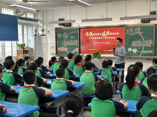 近日,乐山市实验小学五年级2班乐影中队邀请到四川省普善公益慈善促进会监事长、乐山市抗美援朝铭记传承会会长、乐山市抗日战争文史研究联合会常务副会长廖翔老师,带来了一场主题为“传承红色基因,述说英雄故事”的主题中队会。