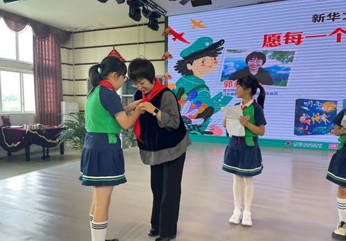 在活动现场,乐山实验小学的少先队员们为郭老师献上红领巾和鲜花。郭姜燕老师用生动活泼的语言给孩子们分享了她来到乐山发生的趣事,在孩子们一阵阵欢笑声中,郭老师开启了她作品里的童话世界。