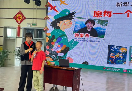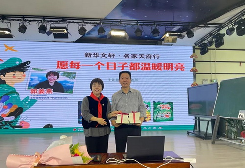 最后,郭姜燕老师赠送作家签名图书给学校,赵校长接受赠书。学校将以此活动为动力,进一步丰富读书活动,让阅读助力学校教育高质量发展,为孩子们的成长成才奠定靓丽的精神底色。