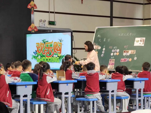 黄欢老师执教《认识人民币》。教学活动中,黄教师展示各种面值的人民币,让学生直观感受人民币上的图案,唤醒爱国主义思想以及珍惜钱币的意识。在生动有趣的购物情境中掌握元、角、分之间的进率,调动了每个学生的积极性,把教学目标落到了实处。