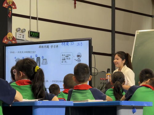 蒋雨含老师执教《摆一摆,想一想》。这是一节“综合与实践”活动课。梁老师在操作活动中,引导学生观察、对比、分析、归纳并运用规律解决问题。学生一边摆、一边记录,集体探究圆片的摆法,经历由无序到有序的思考过程,再用探索出的规律进行不摆圆片直接写数的活动。以多样化的习题来检验学生的学习效果,让学生体会数学的魅力。