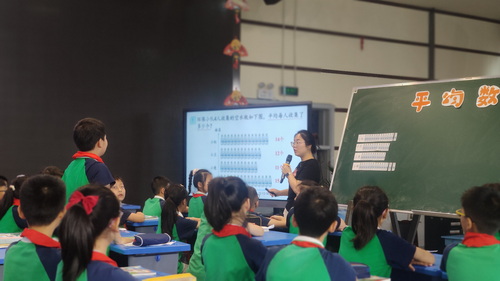 刘琴老师执教《平均数》一课。刘老师创设收集矿泉水瓶的情景,引导学生思考“平均每人收集了多少个?”,学生在自主探究和合作交流中想到了用“移多补少”和“先总后分”求平均数的方法,从直观操作和算法两个角度进一步体会了平均数的意义。在学习过程中,学生感受到了平均数的范围性、虚拟性、敏感性等特点。