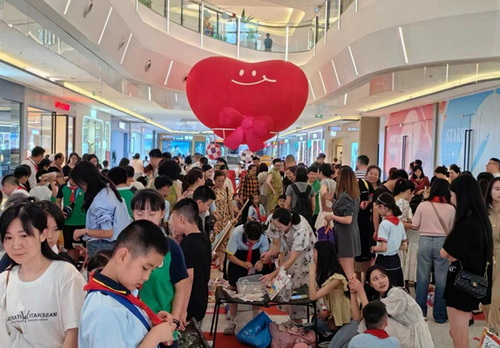 少先队员们的点滴爱心在火热的吆喝声中传递开来,各摊位前人山人海,一张张精心设计的海报、一句句别有新意的标语、一列列琳琅满目的商品,都凝聚着少先队员们满满的心意。听!“小摊主”们卖力地吆喝声:“走过路过不要错过”“买一送一”,声音此起彼伏,一浪高过一浪。看!“小顾客”们也在认真挑选自己心仪的物品,有闲置书本、手作甜品、精美书画……一张张洋溢着幸福的笑脸,定格着“团结友爱、助人为乐”的幸福感。