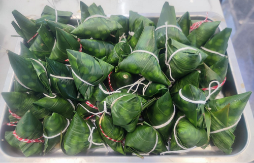 关于端午的故事听完后,接下来孩子们上手包粽子了,一开始显得有点手忙脚乱,小粽子们有的被“五花大绑”,有的像个大胖丁,家长开启手把手教学模式,折粽叶、压糯米、系绳子,孩子们一步步掌握包粽子的要领,学得十分认真。经过反复学习,清香的粽叶、晶莹的糯米,在一双双小手努力下,组合成了一个个漂亮的粽子,完美收工。