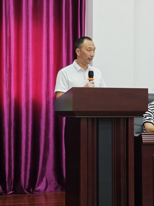 省地震局自贡地震监测中心站长景晟宣读中国地震局《关于公布2023年度防震减灾科普示范学校和国家防震减灾科普教育基地认定评估结果的通知》,宣布来凤小学被评为2023年度国家级防震减灾科普示范学校。