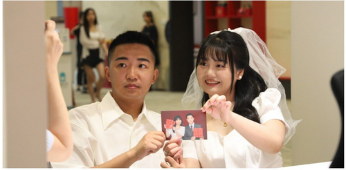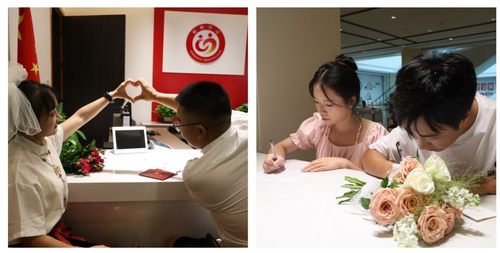 “七夕是中国的传统节日,在这个日子来领证比较有纪念意义。同时也是我们认识两周年纪念日,所以我们选择在这个特殊的日子来领证登记。”新人李麟翼开心地说到。