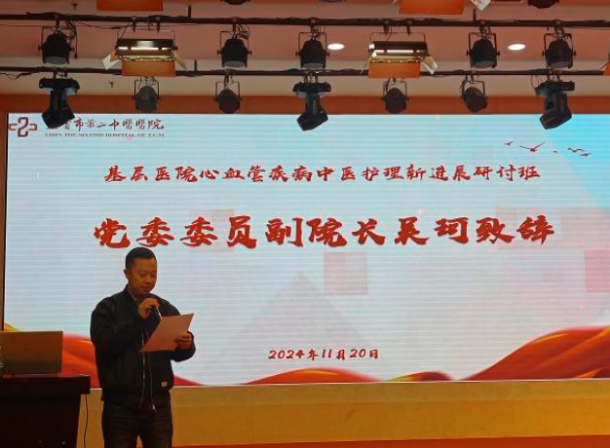 为进一步发挥心血管疾病中医护理特色与优势,分享中医护理经验,宜宾市第二中医医院于2024年11月20日举办了市级继续教育项目“基层心血管疾病中医护理新进展研讨班”,来自各级医疗机构近200名医务人员参加了本次培训,院党委委员、副院长吴珂参加会议并致辞...