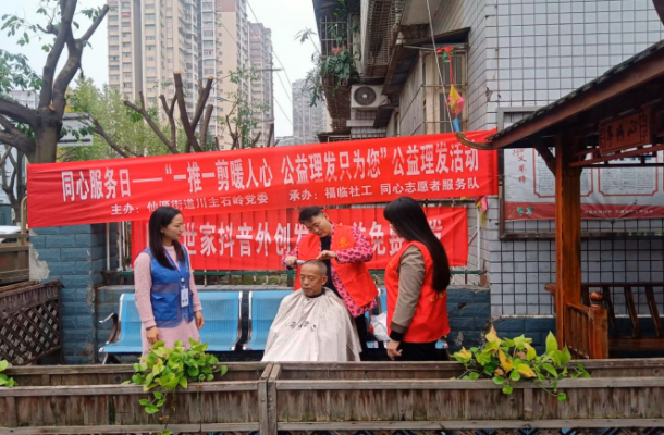 宜宾市南溪区仙源街道川主社区开展“一推一剪暖入心 公益理发只为您”公益理发活动